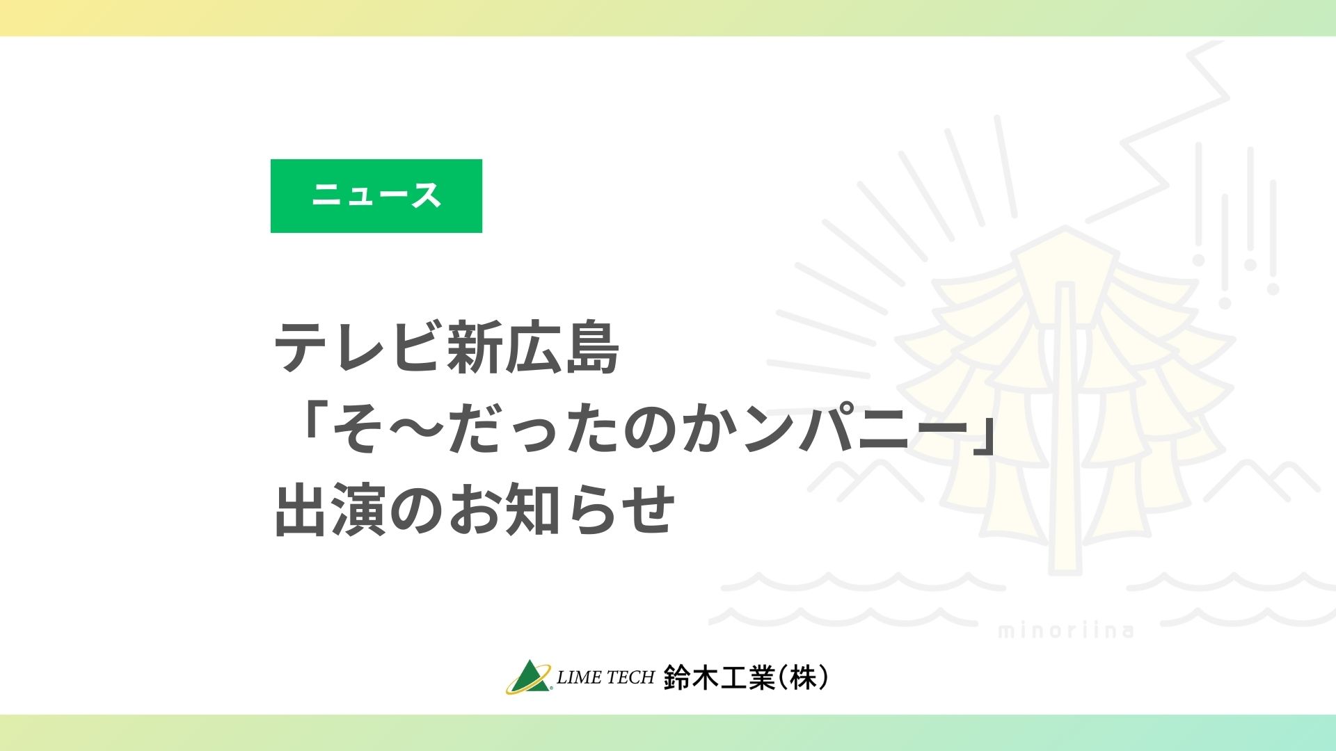 このたび鈴木工業株式会社が、テレビ新広島の番組「そ〜だったのかンパニー」に取り上げられることとなりましたので、ご案内申し上げます。